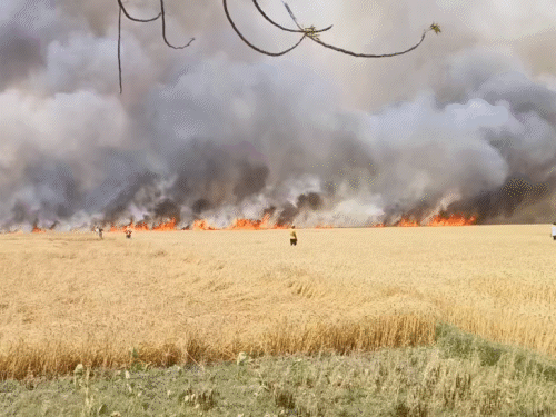 गयाजी के अतरी विधानसभा क्षेत्र का डिहुरी गांव में खेतों में पक कर तैयार खड़ी गेहूं की फसल में आग
