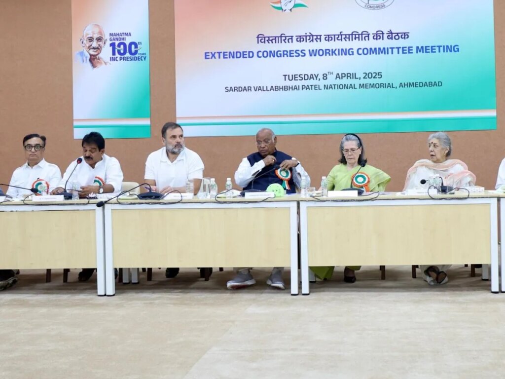 कांग्रेस कार्यसमिति (सीडब्ल्यूसी) की बैठक के दौरान नेतागण कांग्रेस कार्यसमिति (सीडब्ल्यूसी) की बैठक मंगलवार को अहमदाबाद में आयोजित हुई। इस